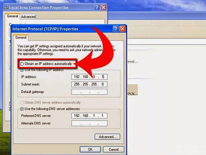 click Obtain an IP address automatically (if it is not already selected), and